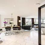 Televize, jídelna a pohovka jsou dostupné v pokojích. K apartmánu patří také fén a ručníky v koupelně.